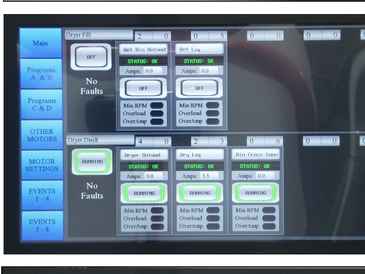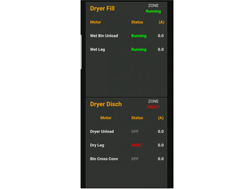 This all in one control and monitoring system lets you customize it to best fit your setup. Create custom zones for grouping motors that share a general purpose. Such as filling a dryer, emptying a dryer, unload pits or even filling overhead bins. Feel confident that if an issue is detected, that zone will safely and automatically shutdown according to what the problem is.
